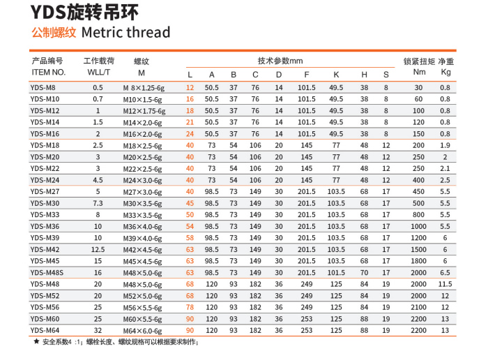 冠航YDS旋转吊环采用高强度钢材制成,具有较好的承重能力和耐磨性。广泛应用于建筑、机械制造、物流等行业,提高了工作效率和安全性。